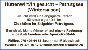 Für die Wintersaison 2025/26 suchen wir für unsere Patrutg Hütte einen Gastgeber der die Hütte in eigener Regie führt.